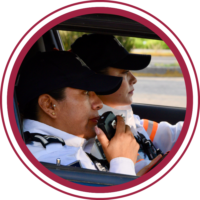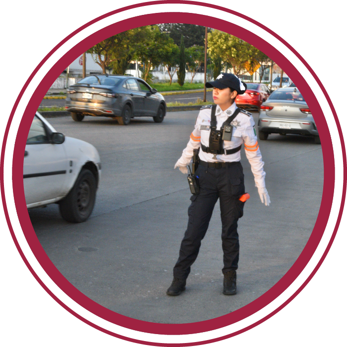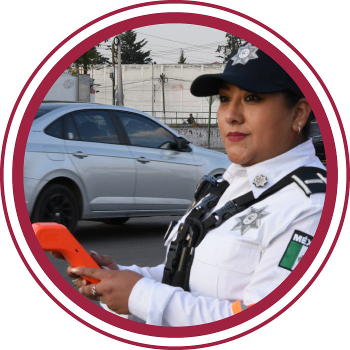 En las vías primarias, solo las agentes de tránsito, adscritas a la Secretaría de Seguridad, las cuales portan: camisa blanca con franjas naranjas, pantalón azul marino y dispositivo electrónico de mano.